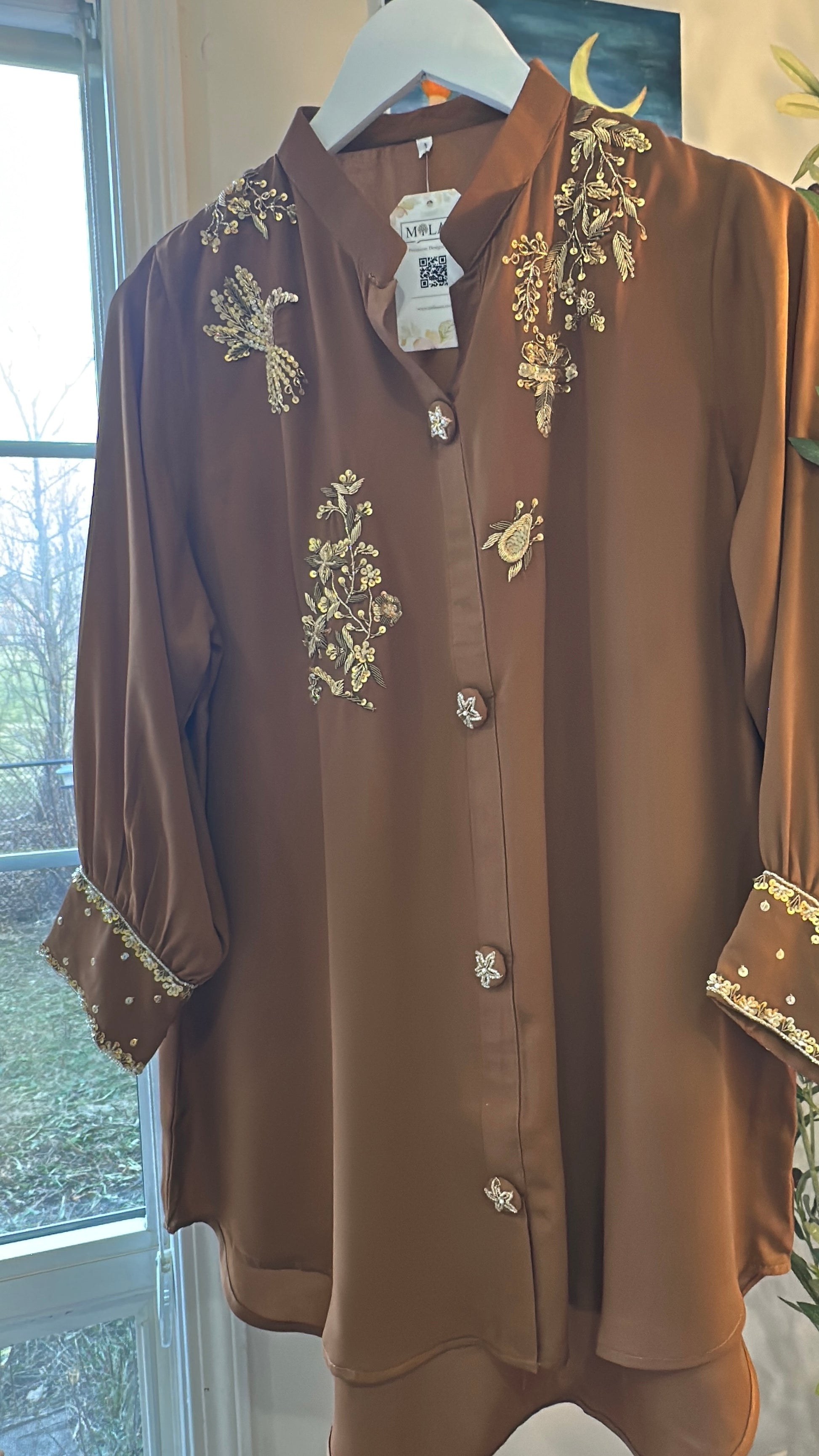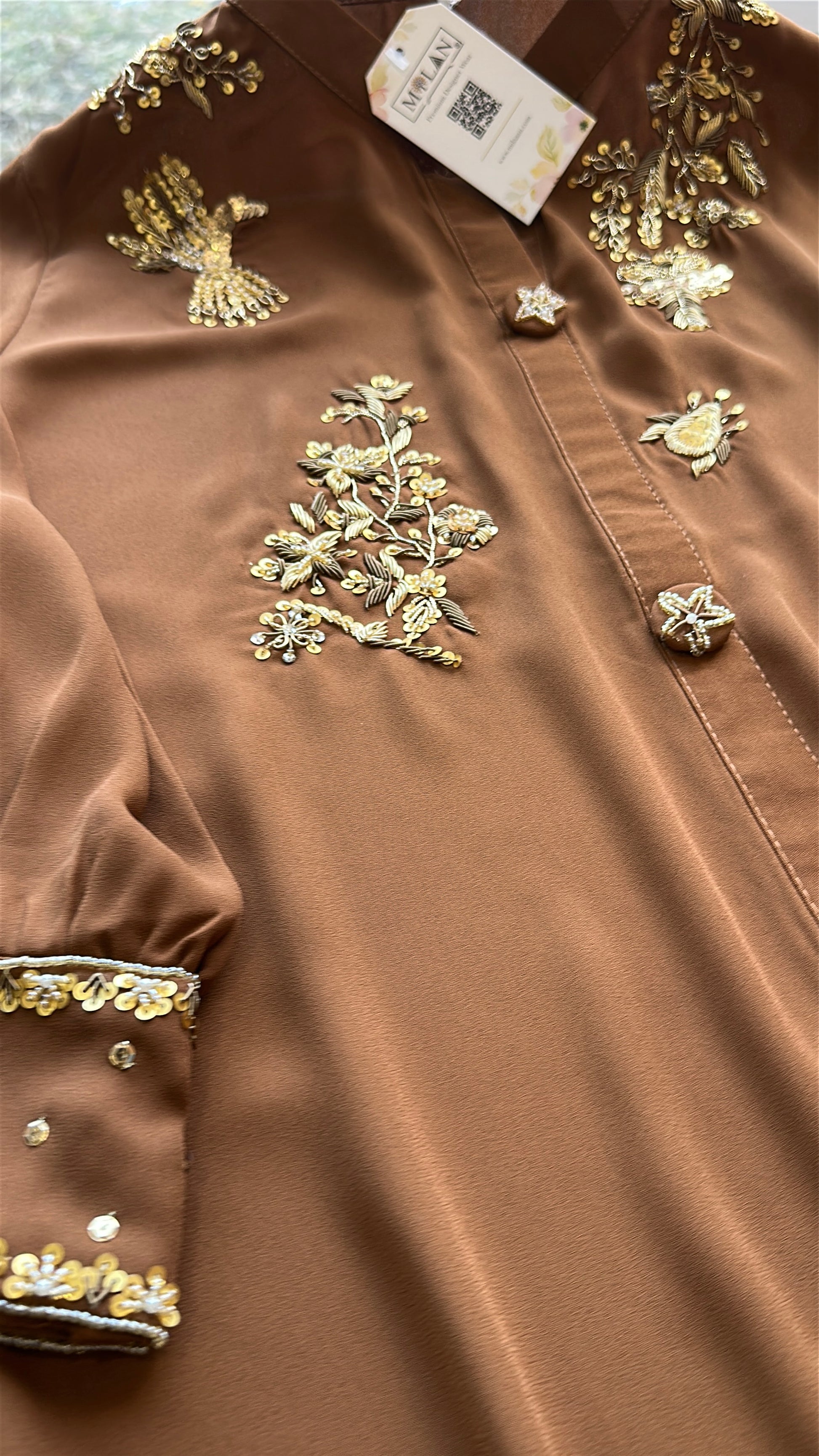 • ✨ Hand-embroidered gold motifs