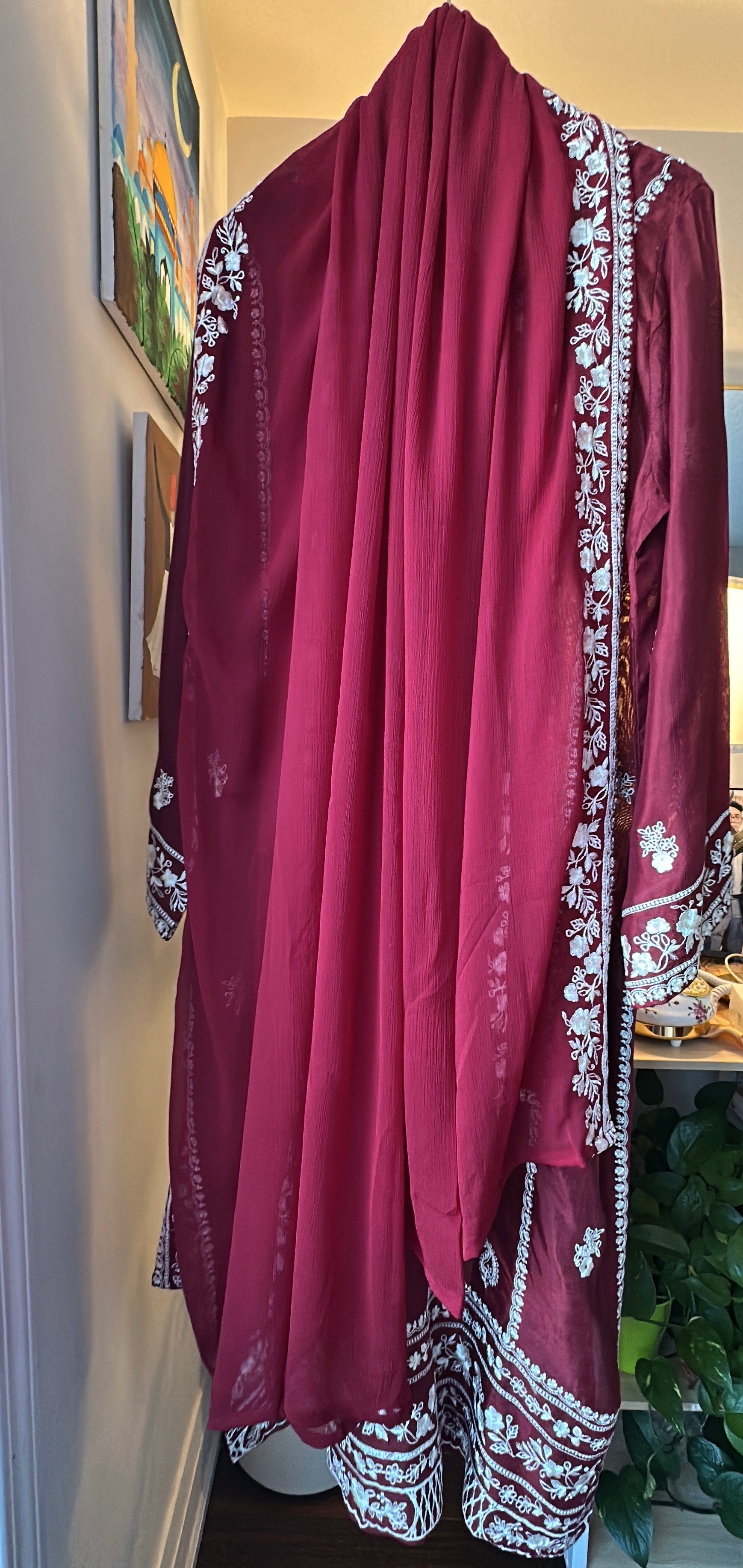 • 🧣 Embroidered chiffon dupatta – lightweight & flowy