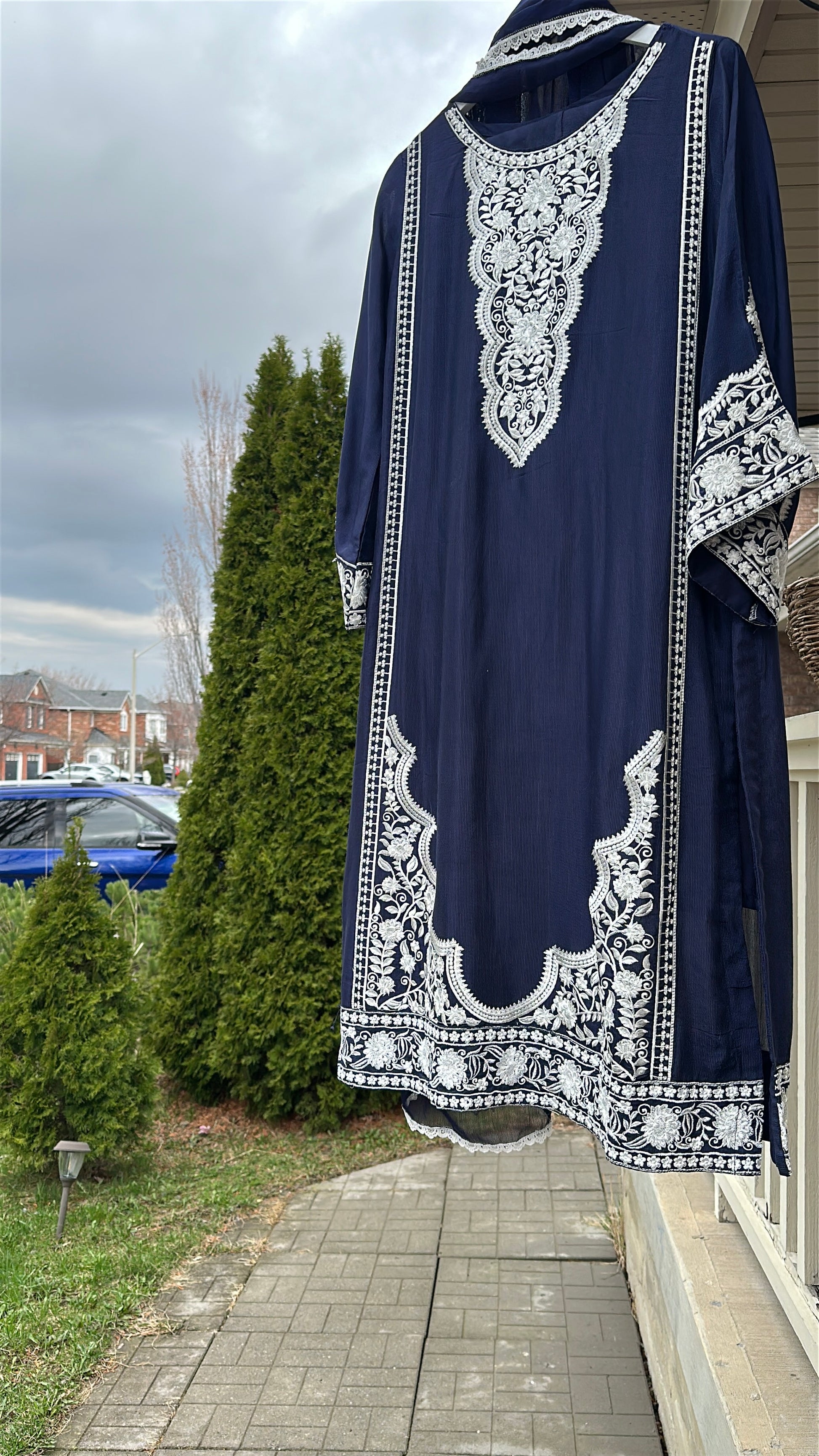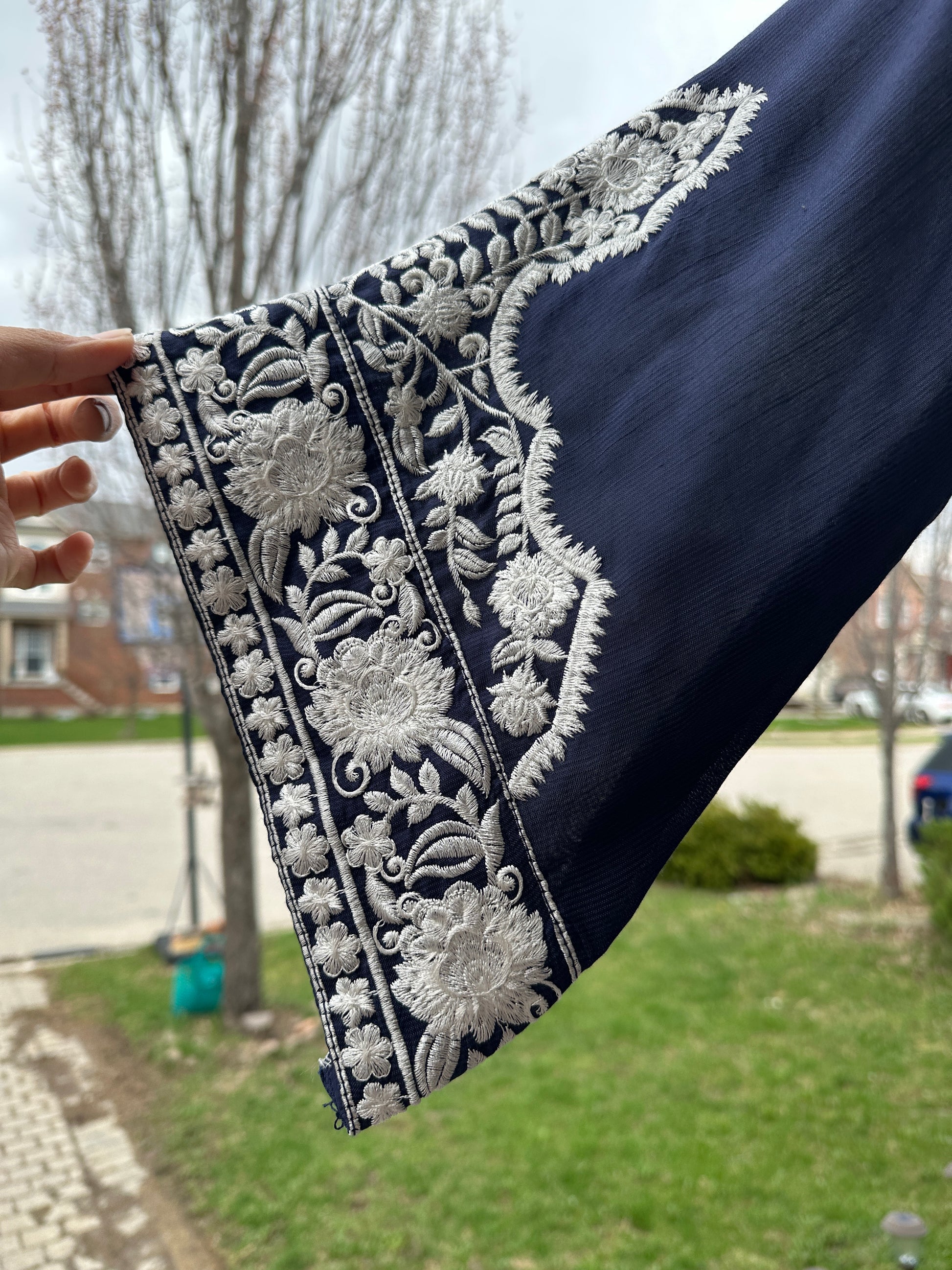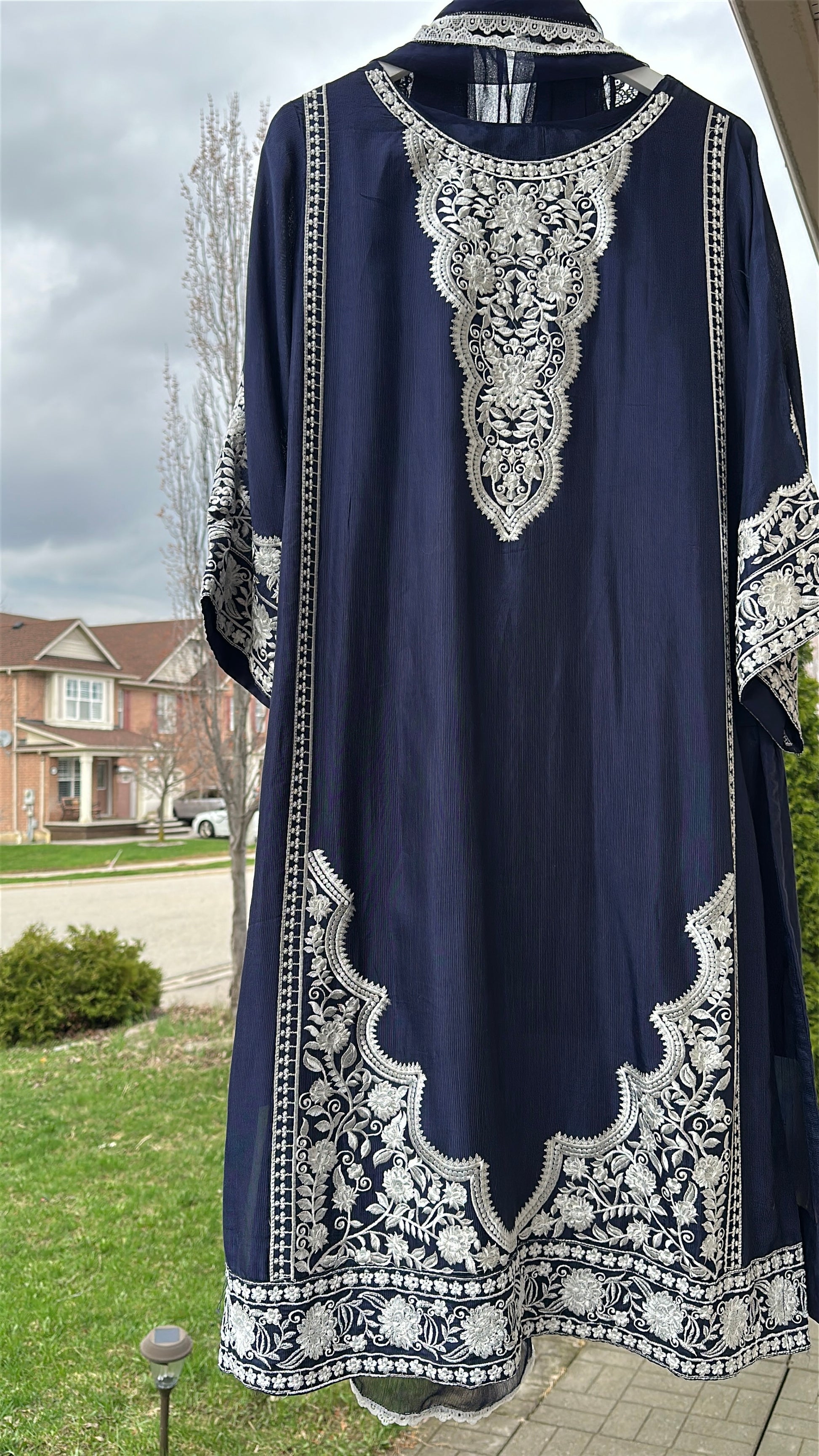 • ✨ Intricate ivory embroidery on neckline, sleeves & hem