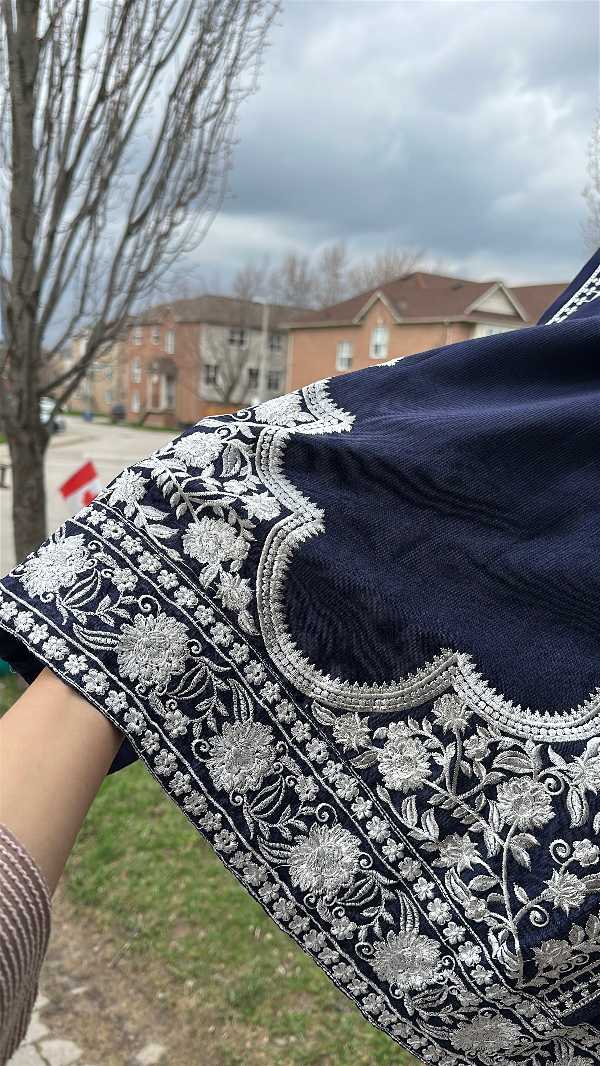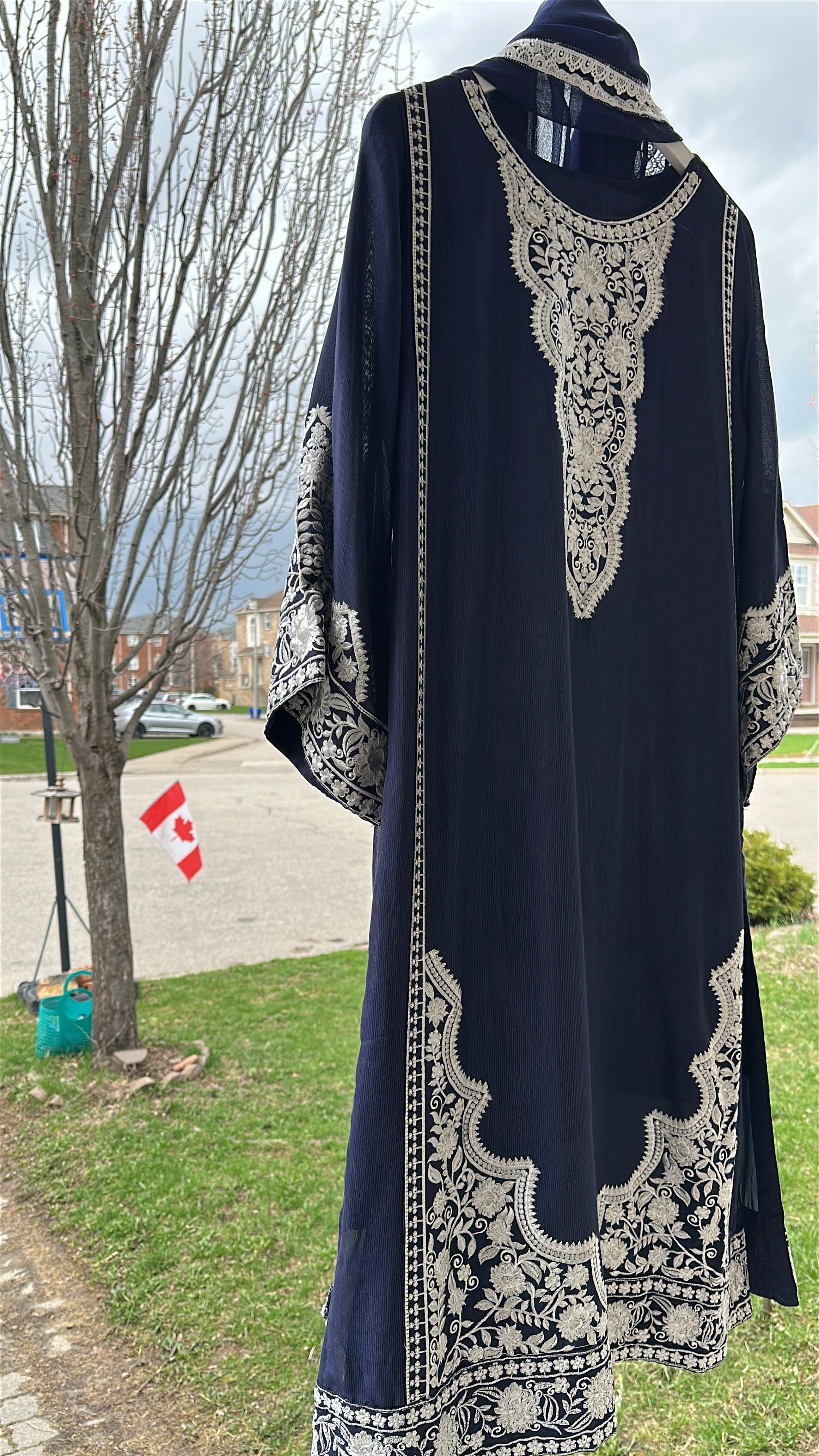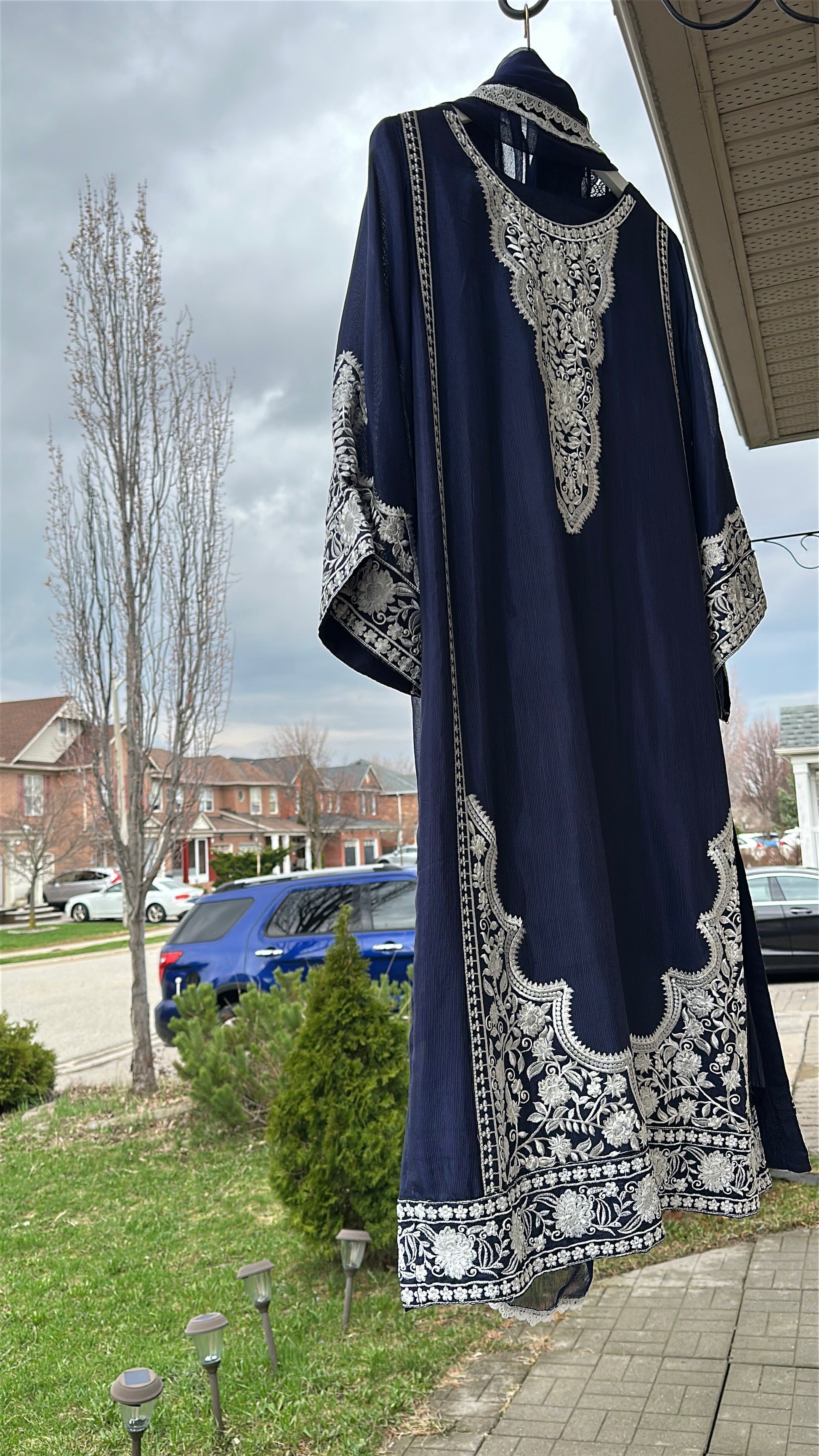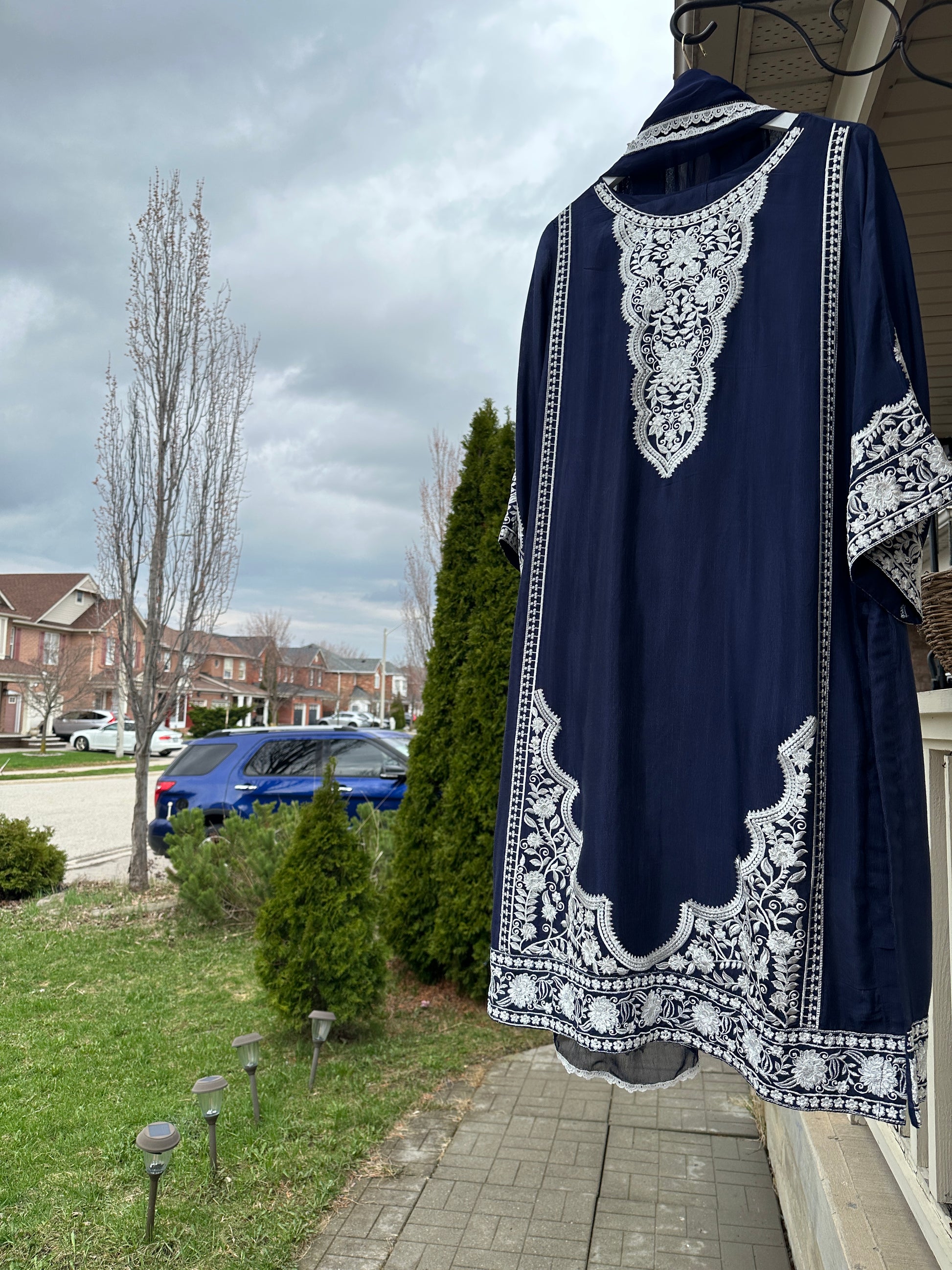 • ✨ Intricate ivory embroidery on neckline, sleeves & hem