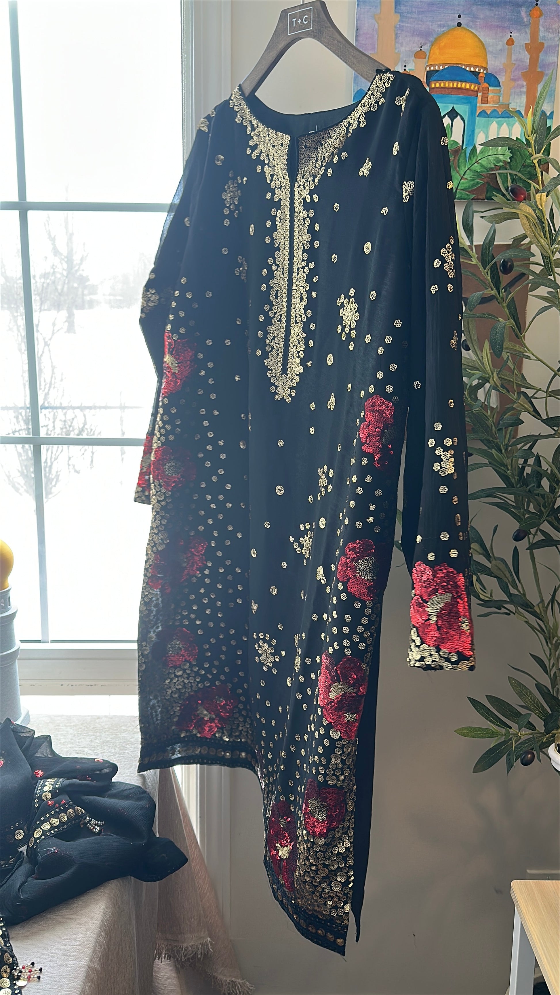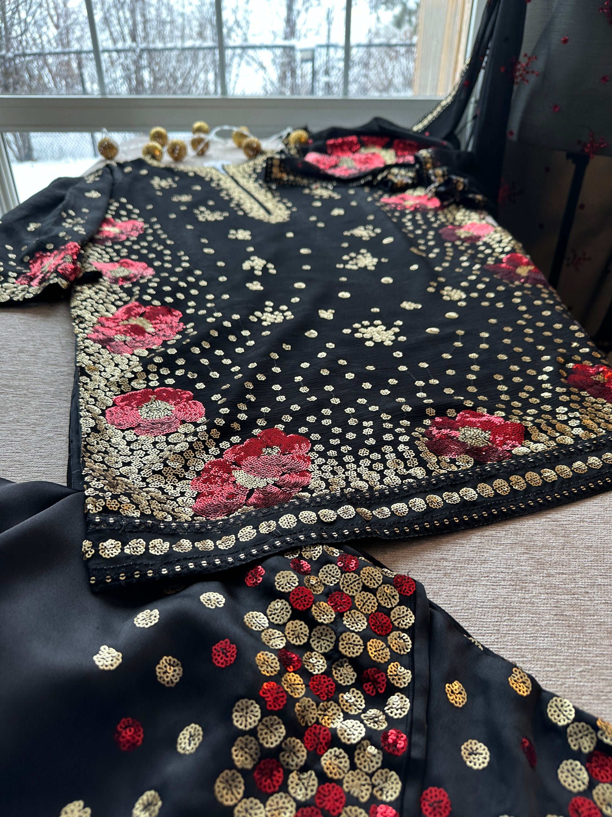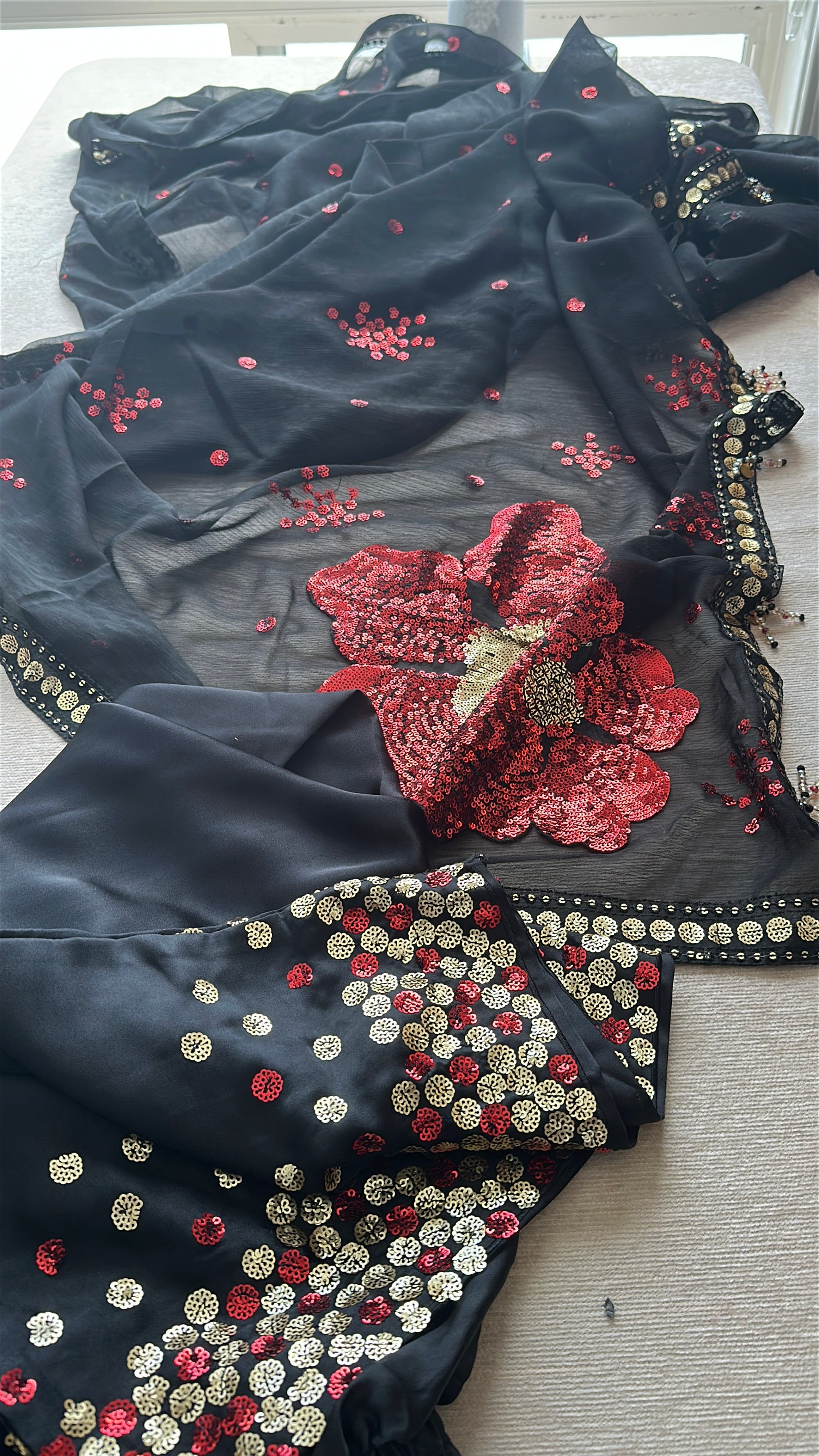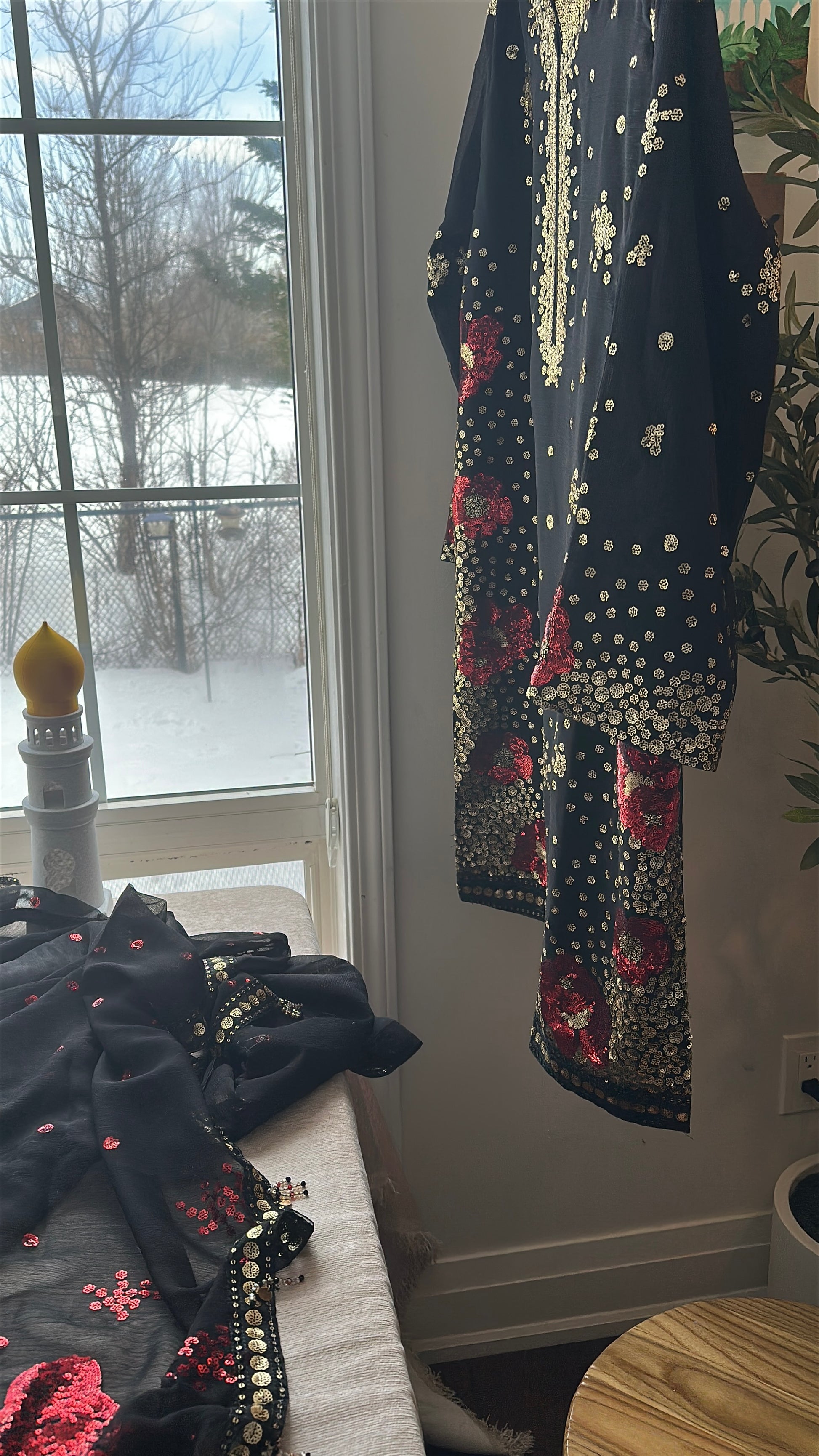 • ✨ Heavy sequins & sitara work in Black, Red & Gold
