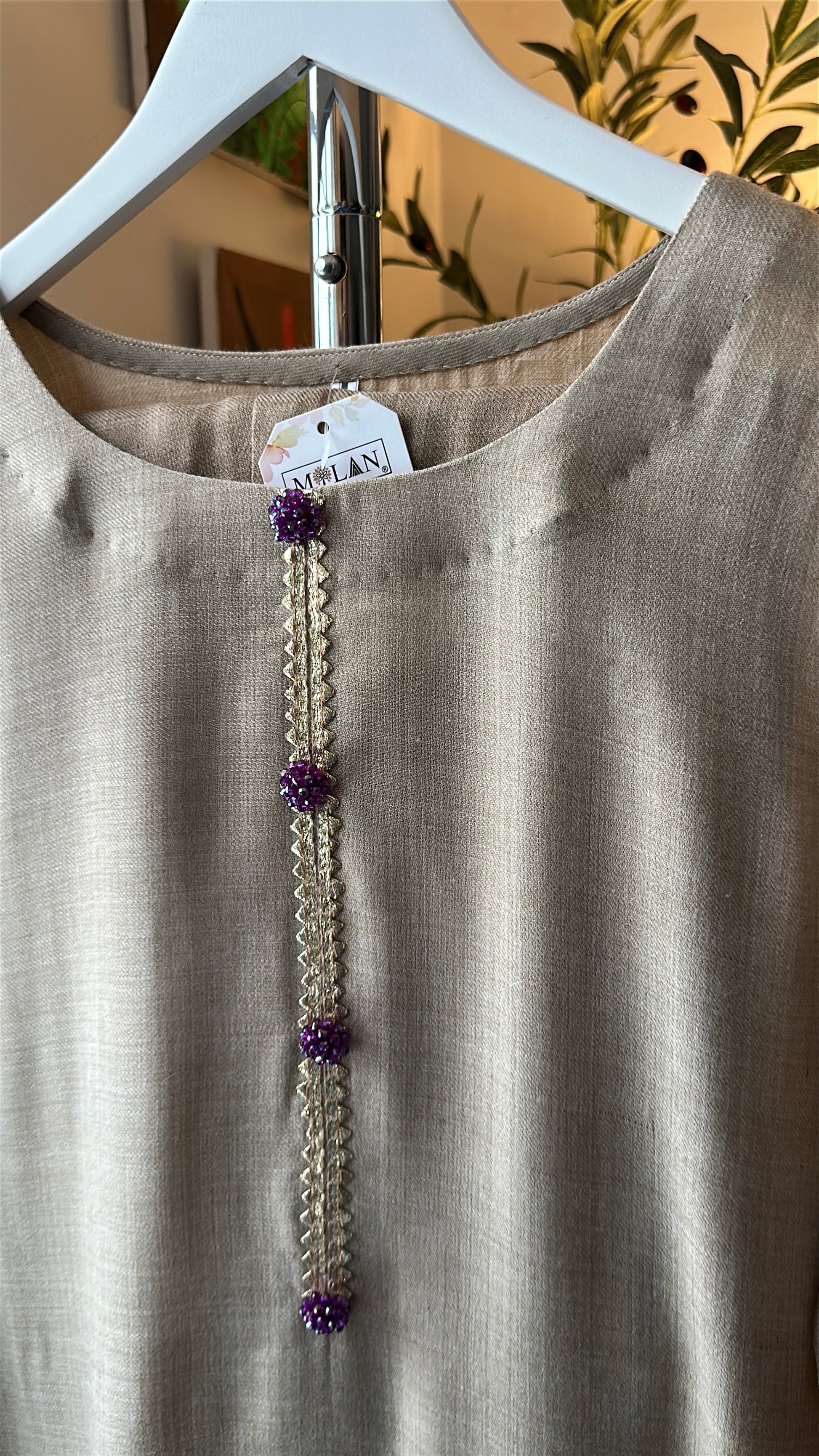 • ✨ Hand-finished neckline with embellishment detailing