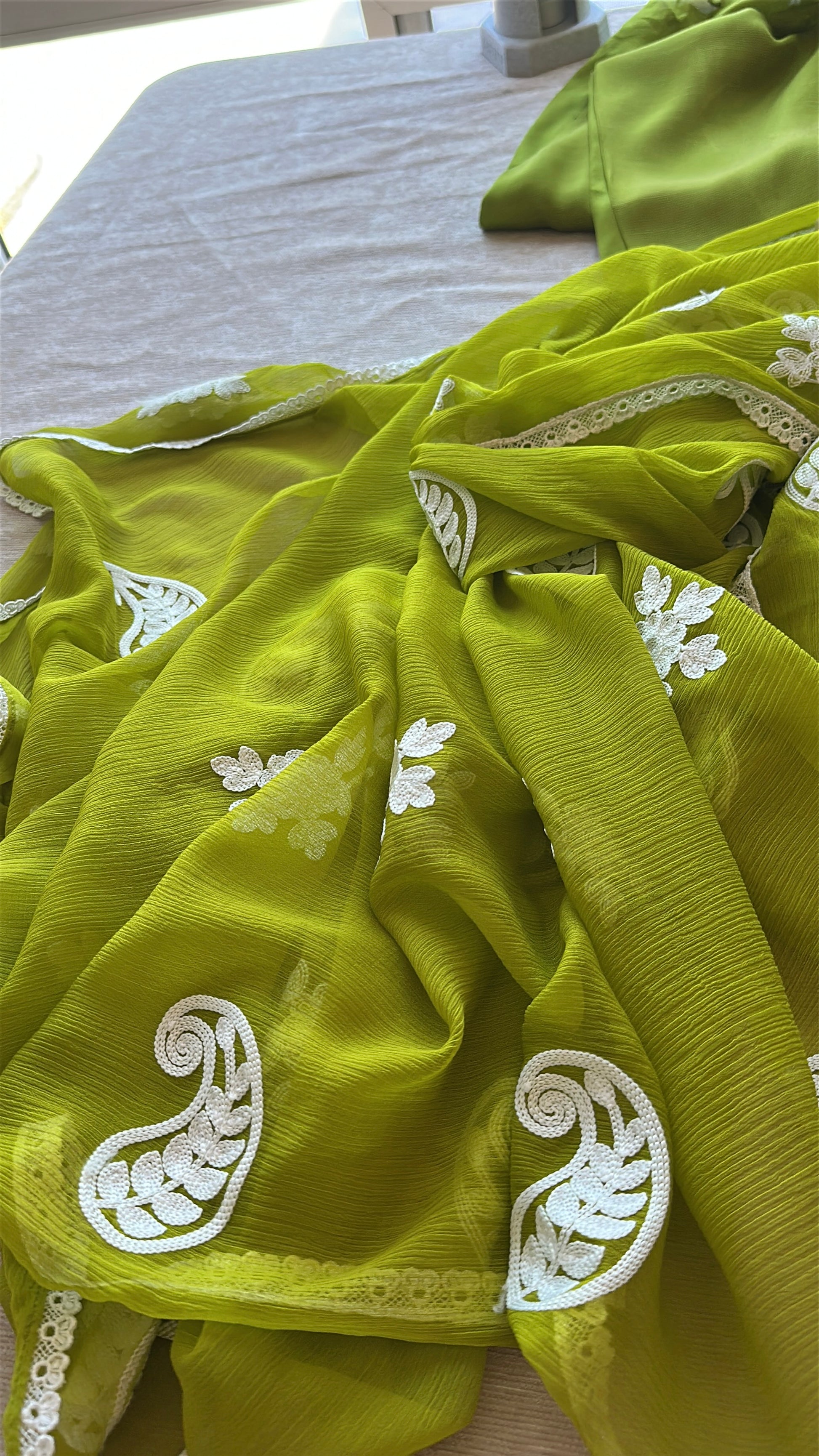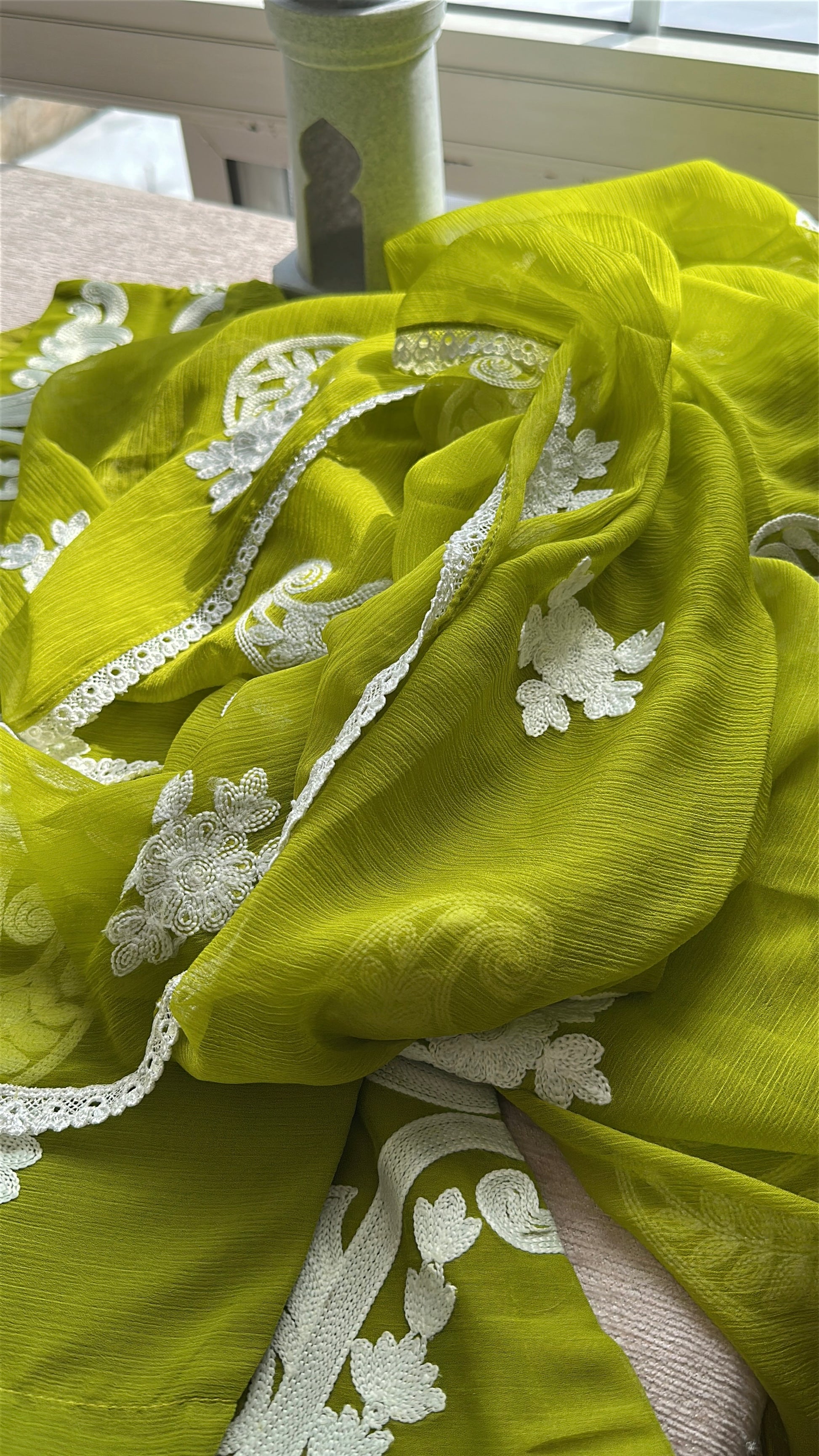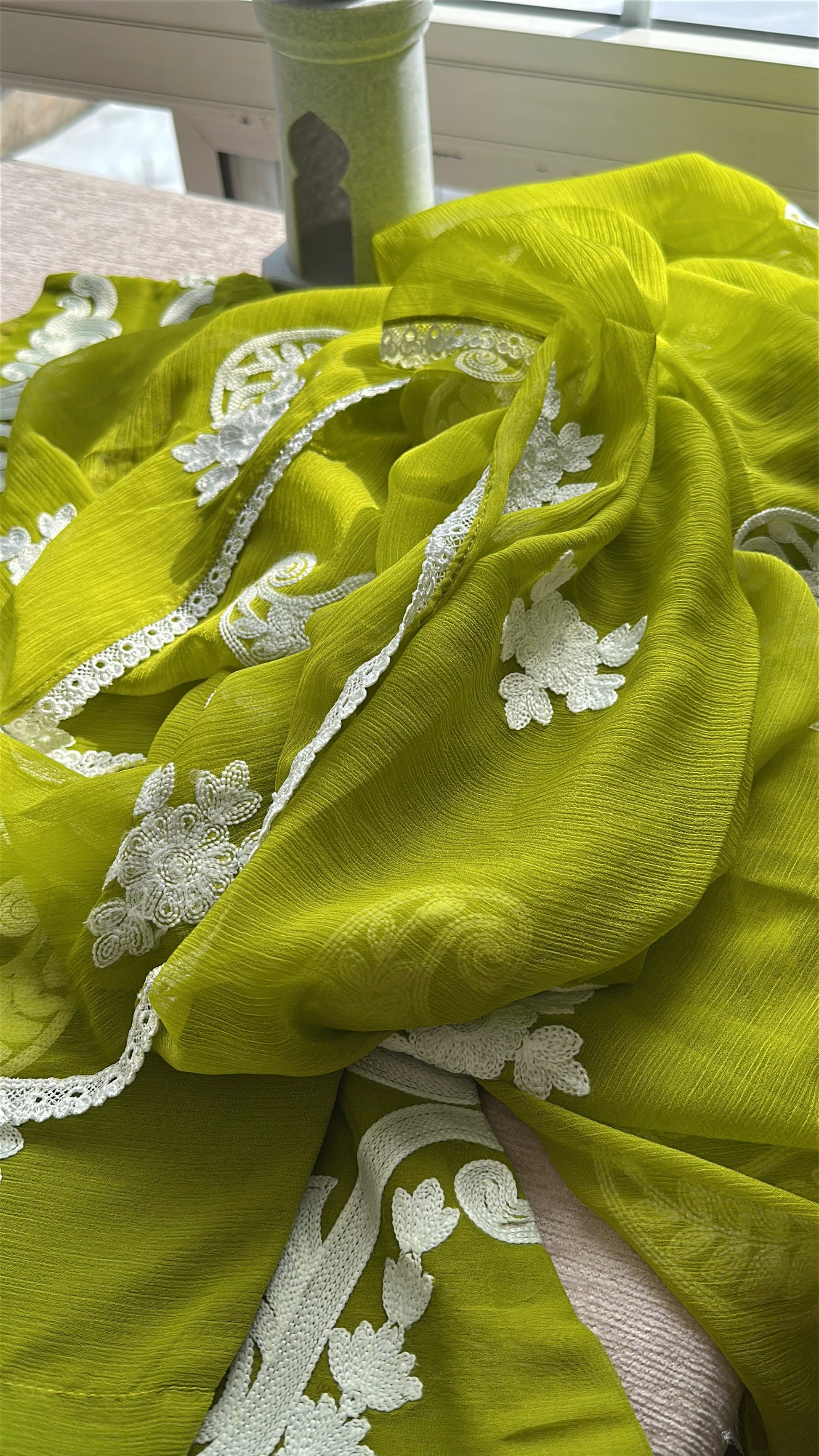 • 🧣 Embroidered chiffon dupatta with lace finish